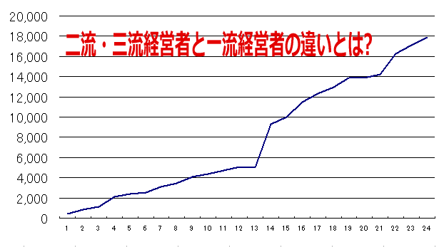 右側の経営者は稀。がんばって売上をあげればいずれ「楽」になる、と思ってきたはず。まぁ喰うには困らなくなったという意味で楽にはなったでしょうが、売上・収入が問題を解決してくれましたでしょうか?NOですよね?「一流の経営者」ではないという事実。