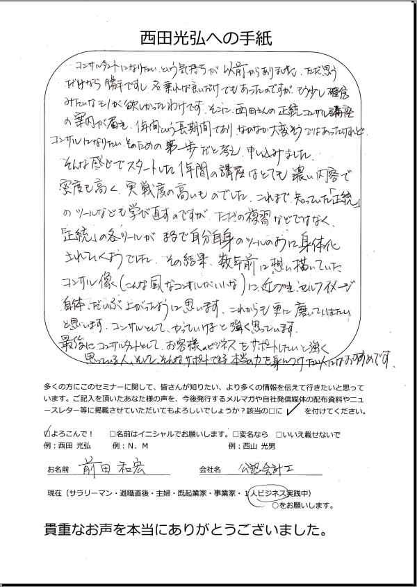 西田さんのコンサルを受けると、あなたもきっとそんな体験が出来ると思います。 |