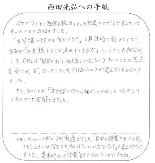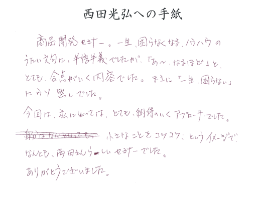 ノウハウではありません。種々の業種の方が受けられて、満足されています。