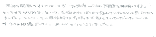 多分「商品開発の価値」と「悩みの深さ」を体験している人なら価値が分かると思います。