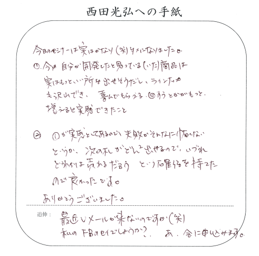 追伸3:「商材開発」とは「商品企画」でもある、ということがこのDVDを見ることで理解できた時