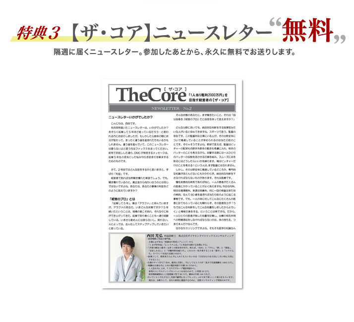 あなたが2日間を投資することを決断してくれるとしたら、 その時間=命を削って参加してくれるのですから、 「お礼」を用意しないと気が済みませんので、 あなたがお金をお支払いしたくなろうとなるまいとこの3つの特典は受け取ってください。 |